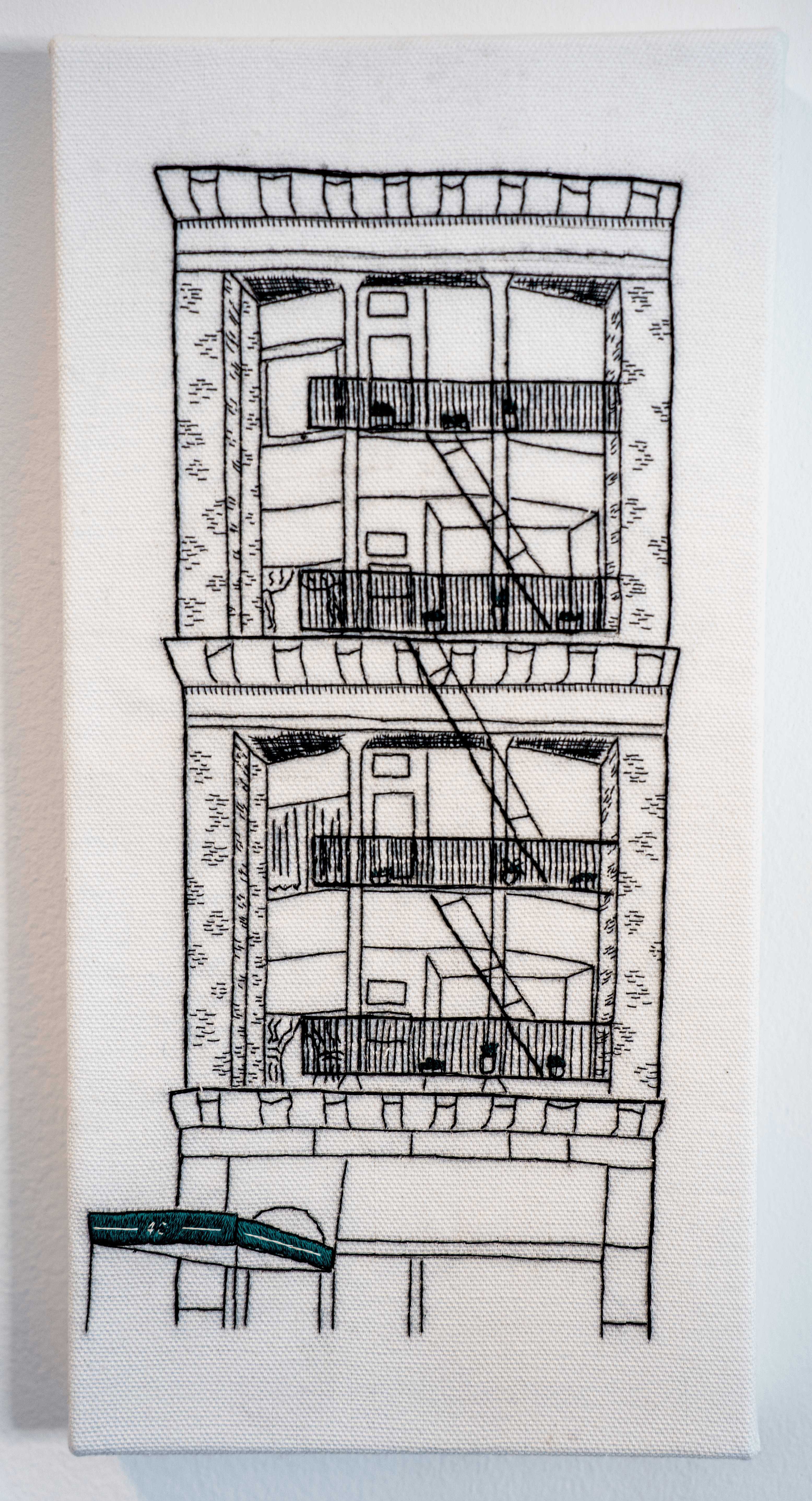 A bespoke hand-embroidered artwork created to celebrate a friend’s first New York apartment. The piece captures the character of the building’s façade while preserving the significance of a meaningful life milestone.